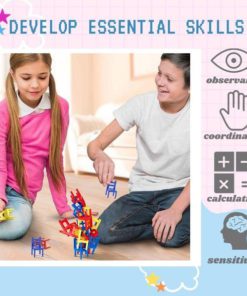 Our 4 year old grandson loves to play this game. It was great for improving his fine motor skills. It is a game similar to the concept of Jenga. You have to fit differently designed chairs together to see who can build the tallest, before they topple over. It is portable for travel. And, it keeps a young one’s attention, which is not easy to do. Great purchase.
