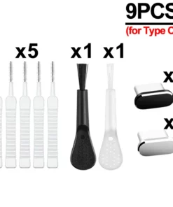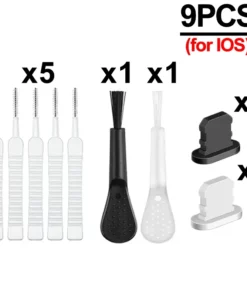 Package contains: 2Pcs * Charging port dust plug,7Pcs * Mini cleaning brush