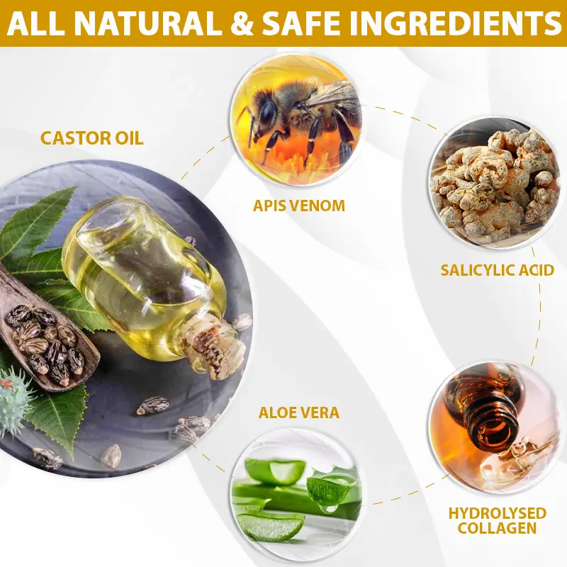 Cheemex™ CastorBee Tag & Spots Peel-Off Mask harnesses the power of Castor Oil, featuring ricinoleic acid and undecylenic acid for targeted skin care. Ricinoleic acid works to soothe and heal the skin, reducing the appearance of skin tags, moles, and warts by penetrating deeply to break down excess tissue.