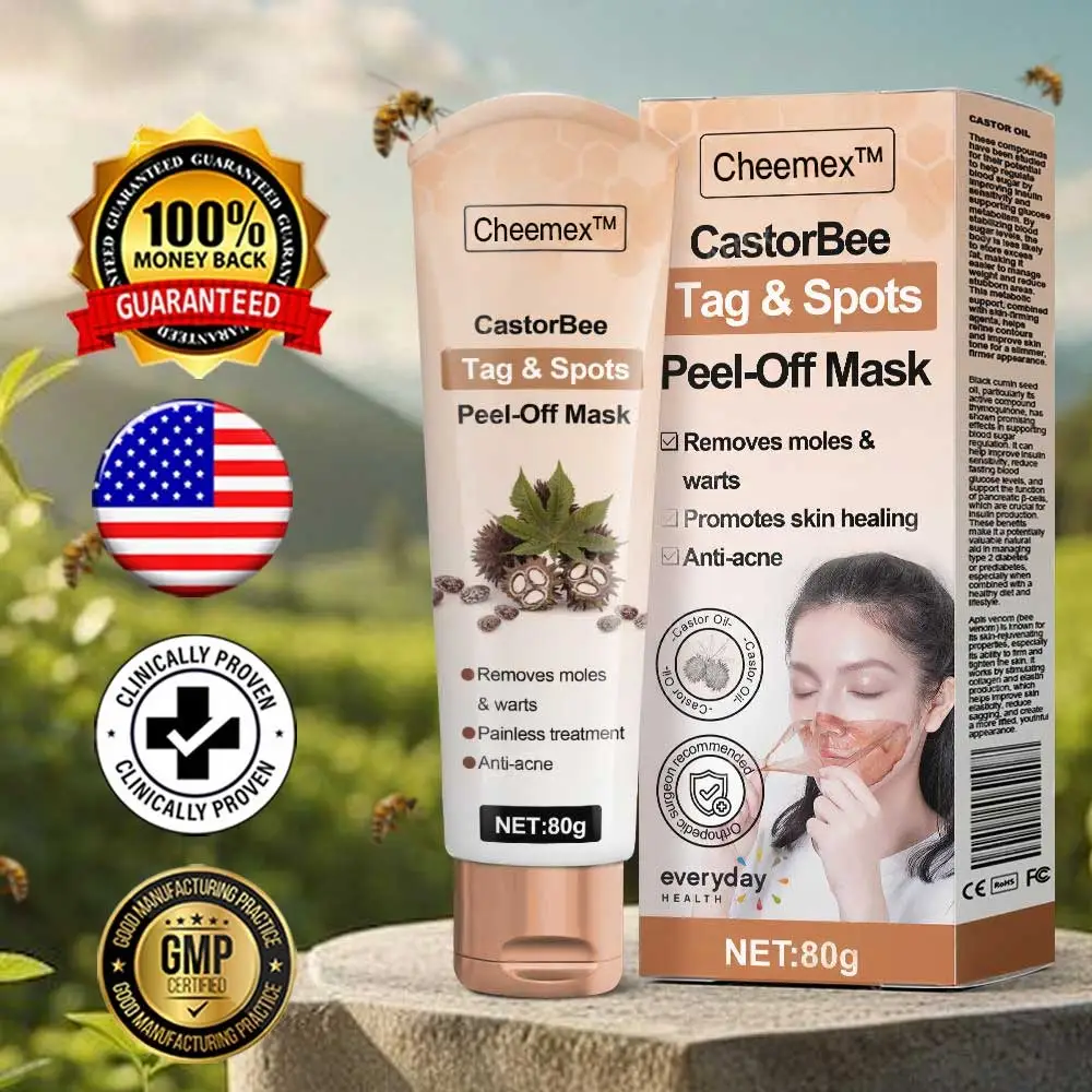 Say goodbye to pesky tags and spots with Cheemex™ CastorBee Tag & Spots Peel-Off Mask—peel, smile, and glow!