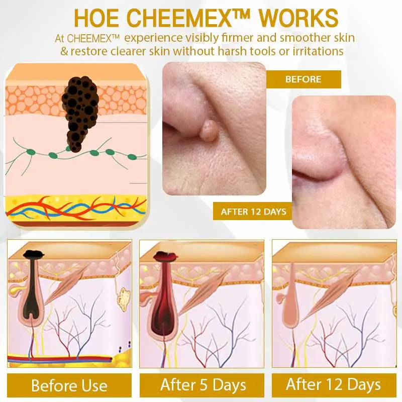 Cheemex™ Peel-Off Mask works with the power of Apis venom, featuring melittin and phospholipase A2 to target skin imperfections. Melittin helps reduce irritation and swelling, encouraging better blood flow and collagen production, which supports the healing of skin tags, moles, and warts.