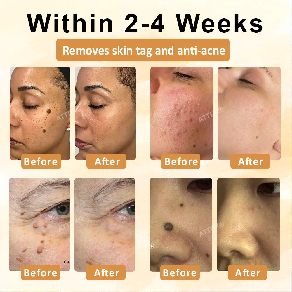 - Once dry, gently peel off the mask and watch as the skin tag or blemish lifts away, revealing smoother, clearer skin.