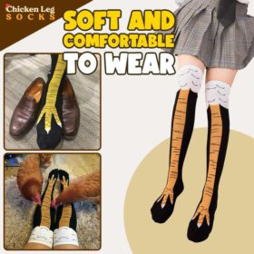 The chicken leg socks are all black with long skinny chicken legs right in the middle that go down to your feet, so if someone were to look at you in front of a darker background, they’ll see you with actual chicken legs instead of human legs.