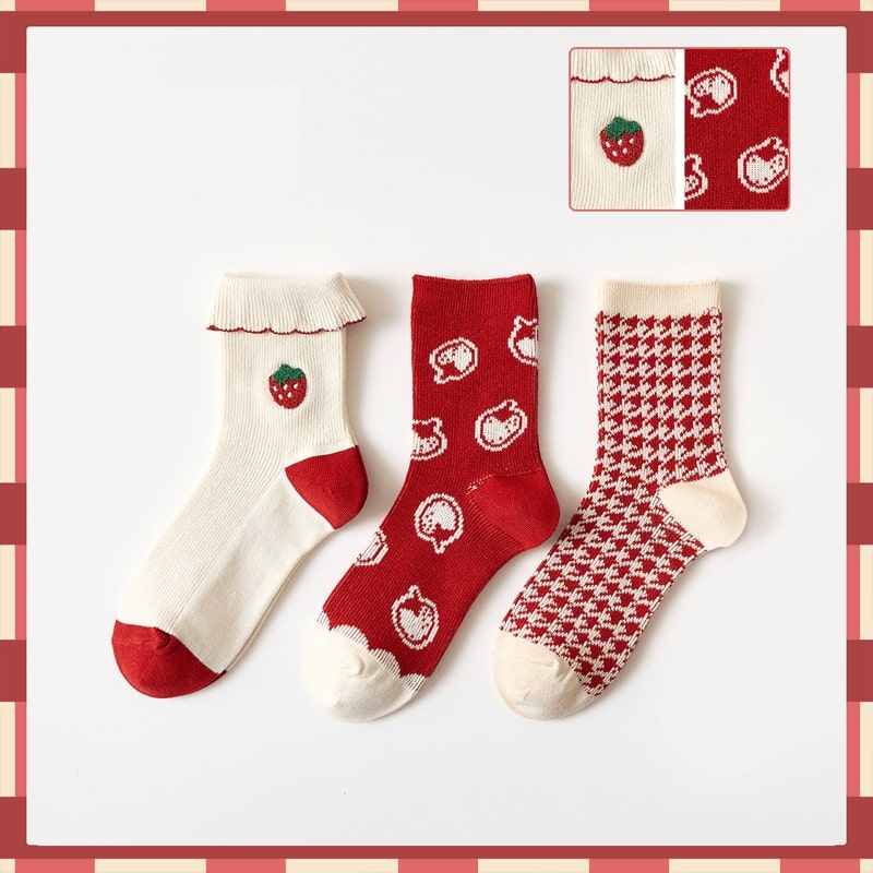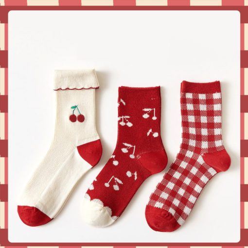 These socks are mainly red and have added strawberries and other elements to give you a different and unique style.