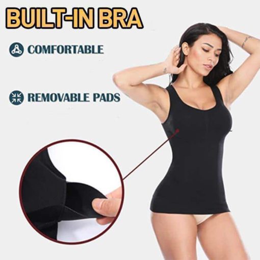 The Comfortable Wireless Cami Tank Top features removable built-in push-up pads that effectively push the boobs up to create an amazing bust shape. The secret lies in its 3-in-1 functionality, combining the slimming power of shapewear, the lifting action of a push-up bra, and the high back coverage of a slimming camisole.