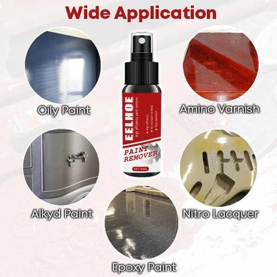 It works on various materials with coats of paints and varnishes, such as metal, stone, wood, and more.