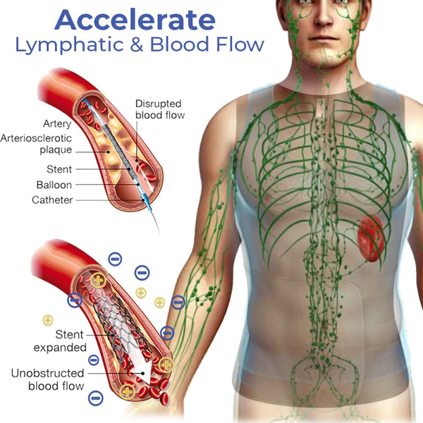 CoreMax™ IONS Sweat Detox Compression Vest helps lower the risk of deep vein thrombosis and blood clots while also accelerating blood flow and increasing oxygen supply to particular muscle regions. Decreases swelling brought on by an accumulation of lymph fluid (lymphoedema). The lymph veins are able to move the trapped lymph fluid more easily because of the pressure. Additionally, the compression vest provides additional resistance for the muscles to work against. This facilitates the fluid’s removal from the location.