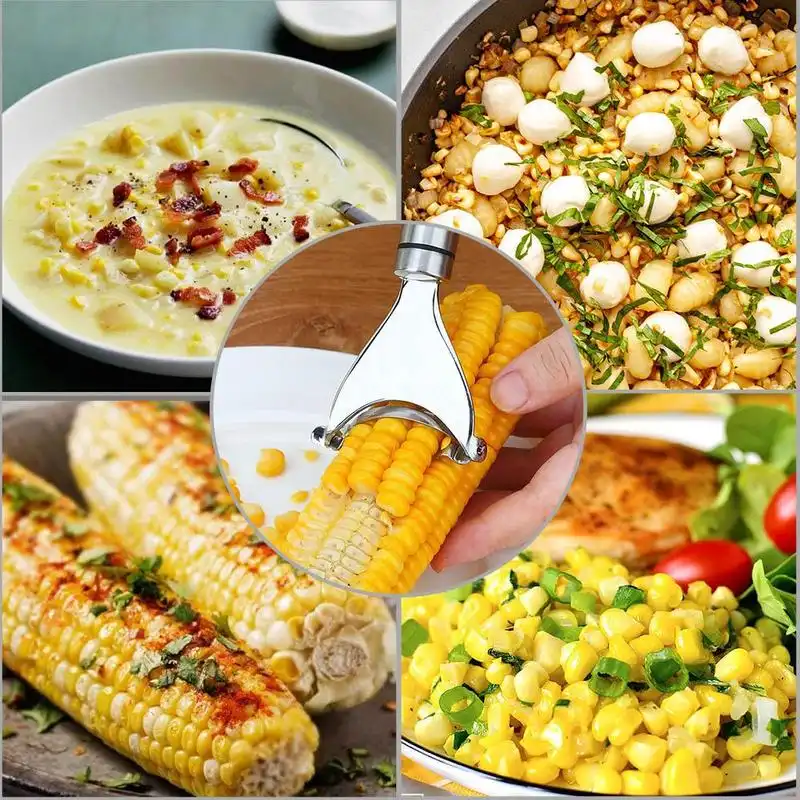 This stainless Corn Cob Stripper adds corn to any meal quickly!