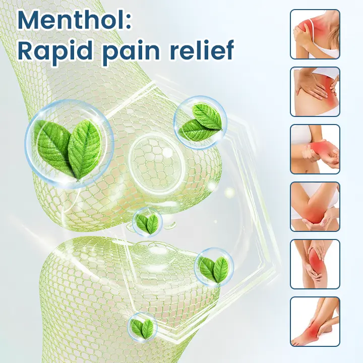 Menthol also helps inhibit sodium ion channels, which are responsible for transmitting chronic pain signals, while providing anti-inflammatory benefits by reducing local inflammatory responses.