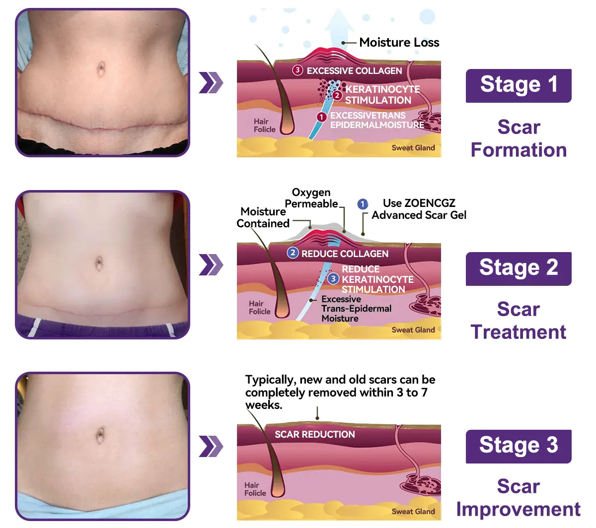 ✅ Suitable for all kinds of scars – Suitable for surgical scars, acne marks, burn scars, stretch marks and so on.