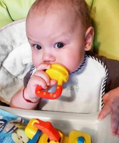 My super easy going 6 month old son has been so whiny and fussy lately due to teething. I just received these yesterday and filled it with frozen breast milk for him to chew on. He won’t even give it back to me when I need to refill it. He loves this thing. It’s so easy for him to hold.