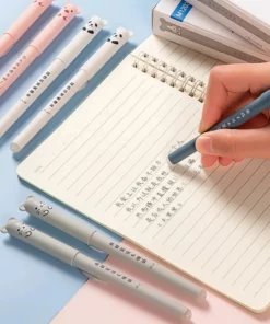 1.Cute cartoon bear can erase pen, can erase design, come with eraser, erase easily do not hurt paper
