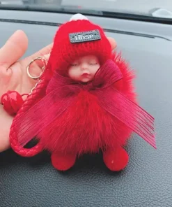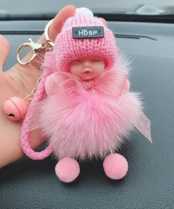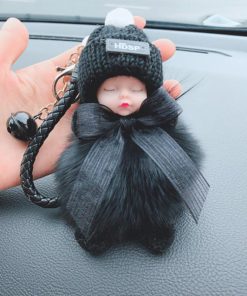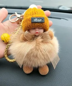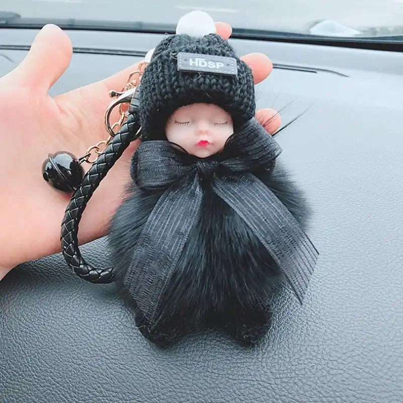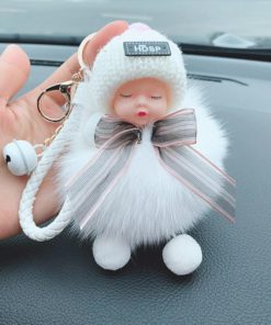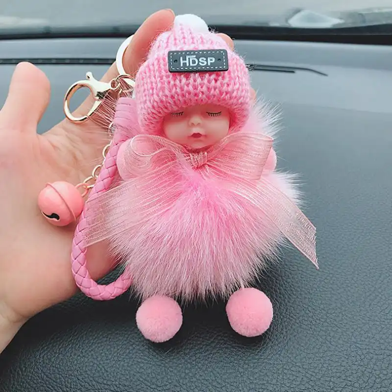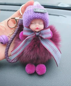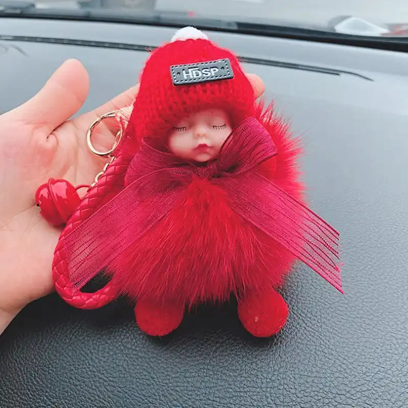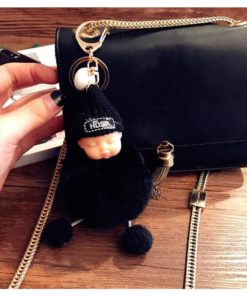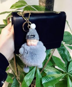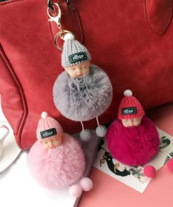- Material: artificial imitation fox/rabbit fur, sky star dried flower, metal keychain, silicone cute baby + wool hat