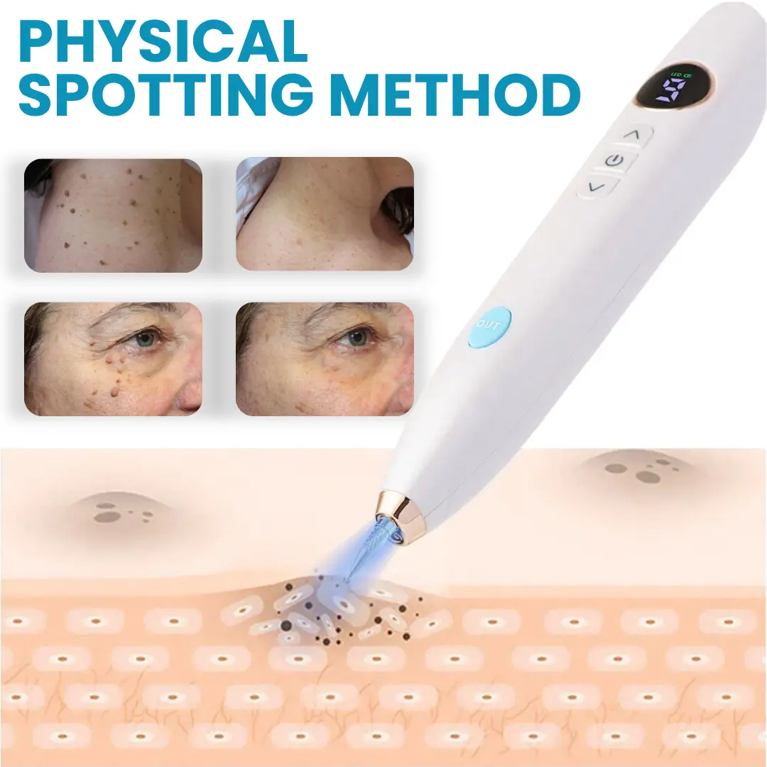 The physical spotting method is a non-invasive skincare technique that uses a fine-tipped device to apply controlled energy directly to the surface of skin imperfections — such as skin tags, moles, and dark spots.