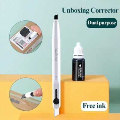 This pen is perfect for blocking out text that can’t be covered with most roller stamps. Works great on regular or semi-glossy paper, as well as large text.