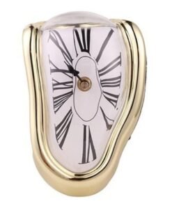 This clock is reminiscent of surrealist art, a curved surface adds the illusion of a melting clock that makes it look like the clock is melting at the edge of the desktop.