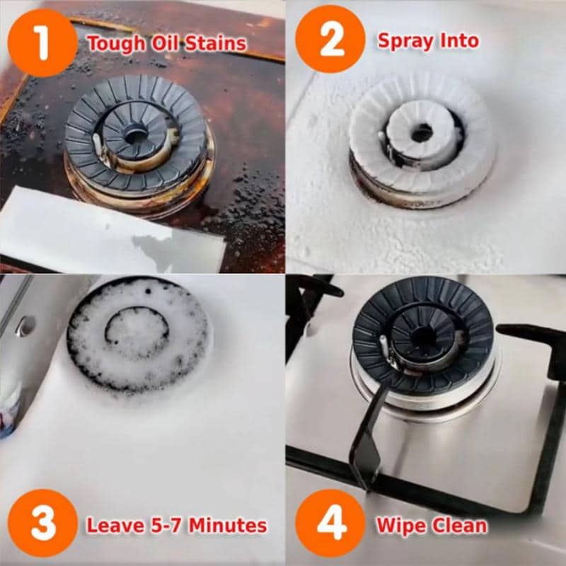 bubble cleaner spray adapts Foam Expansion Technology to spray penetrates and removes stubborn grease and stain from any kitchen items, making things fresh and brand new.