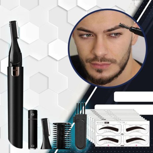 Set D – Electric Eyebrow Trimmer, Male Eyebrow Stickers, Batteries, Trimmer Replacement Head, Cleaning Brush, User’s Manual
