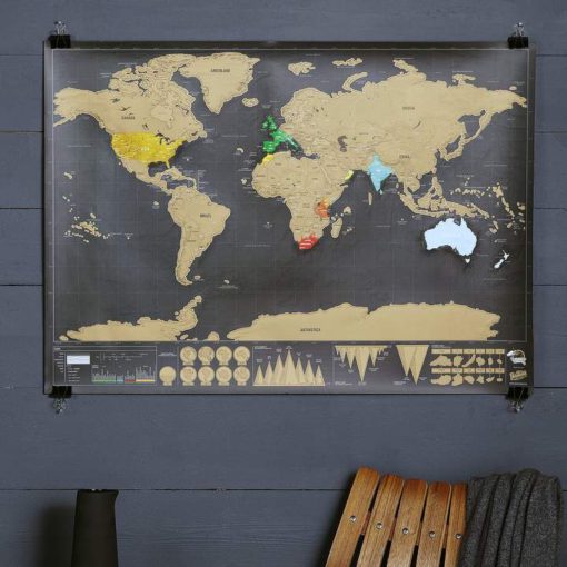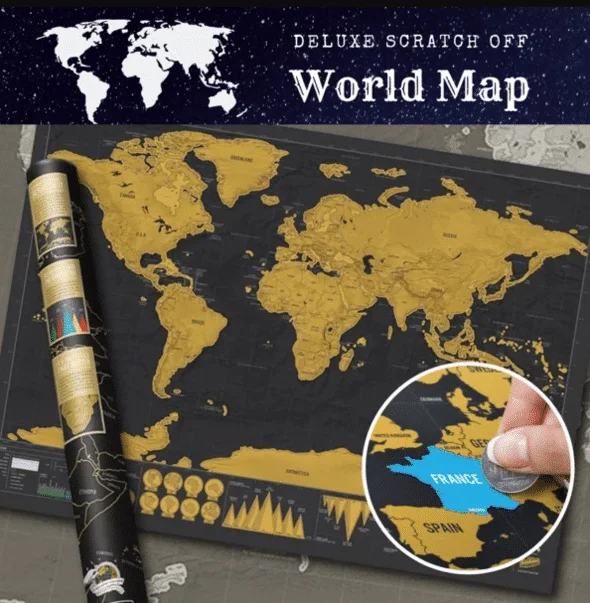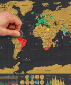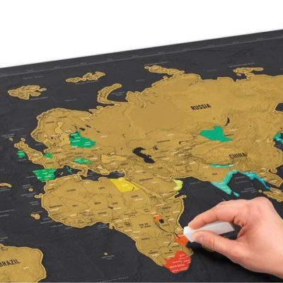Whenever you visit a country, scratch off the gold foil on top of that country to reveal the beautifully colored landscape underneath. Relive your travel memories and feel the wonder of exploration!