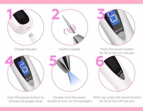 Needles directly work on the freckle, spot, skin tag and will produce a plasma with high temperature immediately. The device is designed to be light and easy to use in the comfort of your home.