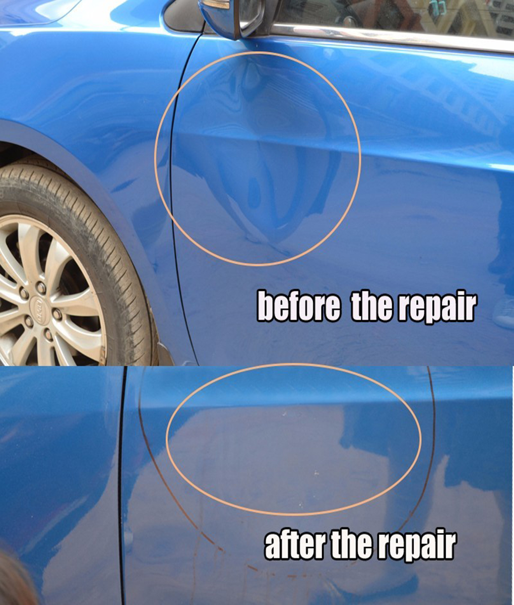 You can fix more kinds of dents shapes with Dent Repair Set! Furthermore, it won’t hurt the original paint of the car! Most importantly, no chemicals or other toxic material is used in this process, it can ensure 100% protect the original paint! The Repair Set is also easy to use, lightweight, and durable!