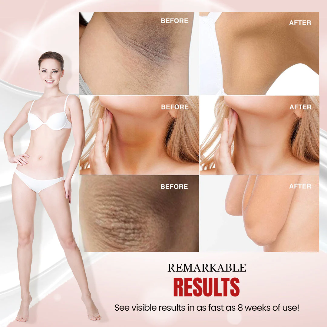 - Efficacy: neck, arms, elbows, legs, bikini area, underarm