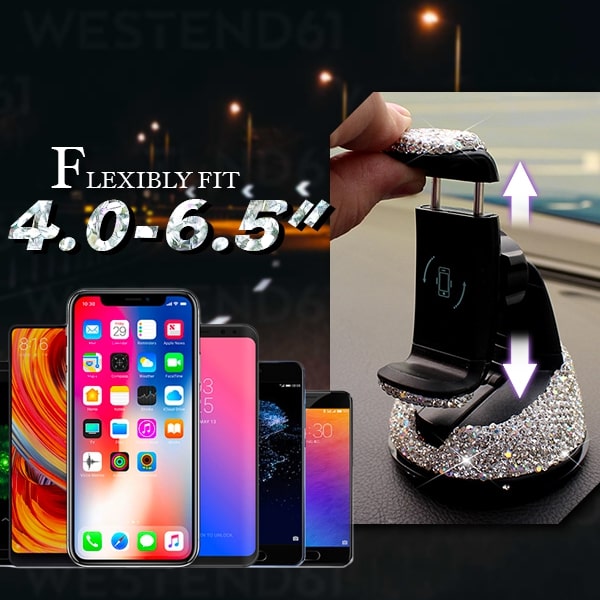Luxuriously embellished with diamond-cut crystal rhinestones, this Crystal Car Phone Mount add an elegant, deluxe look with ultra-sparkling shine to your car. The coolest + hands-free way to receive audio/video calls, view GPS navigation and even enjoy music.