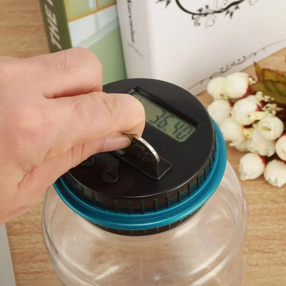 My husband leaves change all around the house. He has an old J&B bottle bank but it doesn’t fit nickels or quarters. So I thought I’d give this a try. Outstanding little bank! You have to press hard to insert coins so it can read them. So it might be tough for small kids or elderly to use. The display shuts off when not in use but still holds the information from the last use. So far I am loving this little bank!