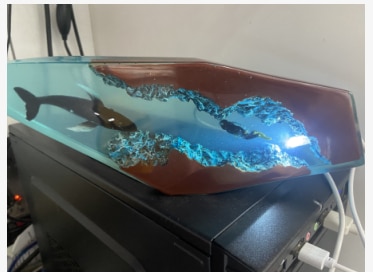 A large resin wooden nightlight shoots the light overhead, illuminating the divers and whales in the cave. Turn on the lights at night filled with this mysterious color. The lighting adopts monochrome LED.
