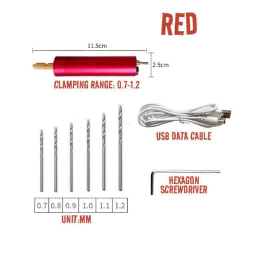 - Package includes: machine + 6 drills + USB data cable + 1 hexagon screwdriver