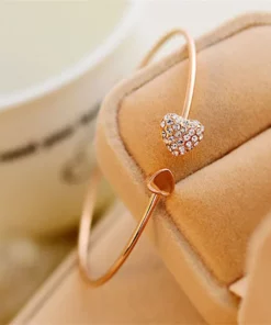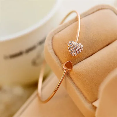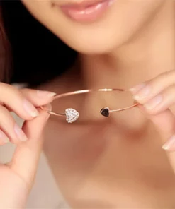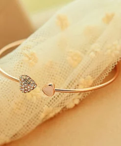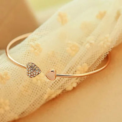 Hot New Fashion Adjustable Crystal Double Heart Bracelet Cuff Opening Bracelet For Women Jewelry Gift Mujer Pulseras