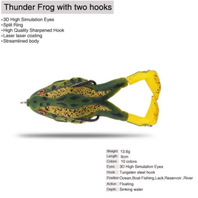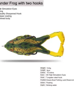 The dual propeller feet on this frog bait create a lot of noise and disturbance on the water’s surface, making it an easy target to track. Active and reactive fish cannot resist its call.