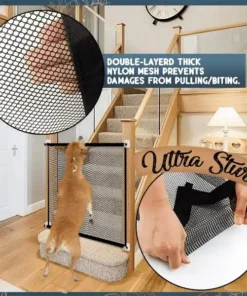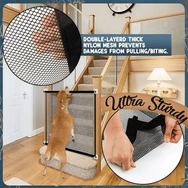 This thick nylon mesh gate provides a drill-free, ultra-sturdy way to keep pets or children away from certain areas like kitchen, bathroom, nursery room etc.