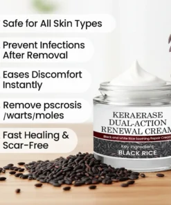 Renewal Cream uses a non-acidic botanical formula that gradually softens raised tissue and dissolves the keratin buildup beneath the bump.This allows the skin tag or wart to flatten naturally without burning, peeling, or irritation.