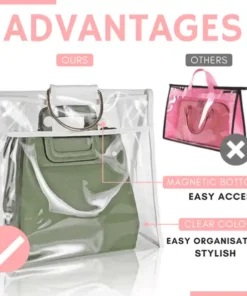 Fashionable & Convenient – Copper handles, white edges and transparent bag make the protector so stylish and universal. It goes well with all of your handbags so you can use it all the time. Magnetic buckles and see-through design for easy access.