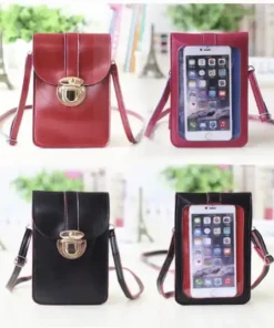 - Touch Screen Phone Purse is a HANDY PURSE that is DESIGNED to CARRY your PHONE at the BACK POCKET to PREVENT it from DROPPING when you are busy with your WHEREABOUTS. made of HIGH-QUALITY PU LEATHER and MICROFIBER LINER for a MAXIMUM PROTECTION from SCRATCH, BUMP, SPLASH, DIRT, DUST, and more. It has a PLASTIC CLEAR COVER to PROVIDE an EASY ACCESS to your PHONE without the NEED of REMOVING it from the PURSE.