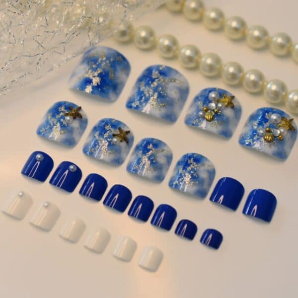 These toe nail patches mimic acrylic, salon gel nails with advanced technology that delivers durable strength with a natural look. There are 24 pieces of toe nails with different shape and size in one pack to fit all!
