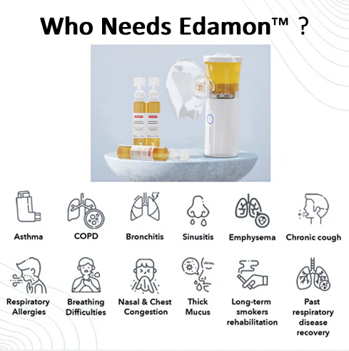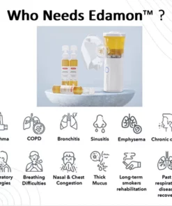 Edamon™ Compact mesh handheld portable Nebulizer is the latest portable nebulizer. It uses nano-atomization technology to convert liquid medicine into atomized form of tiny particles. When used with Cordyceps Extract Spray, it can be absorbed directly into the deep respiratory tract, helping to treat restrictive diseases. and obstructive respiratory diseases (such as asthma, pneumonia, COPD, emphysema, bronchitis, pulmonary fibrosis, and bronchiectasis), and helps inhibit proteins that cause airway allergies. By doing this, you can minimize airway irritation and improve overall lung function.