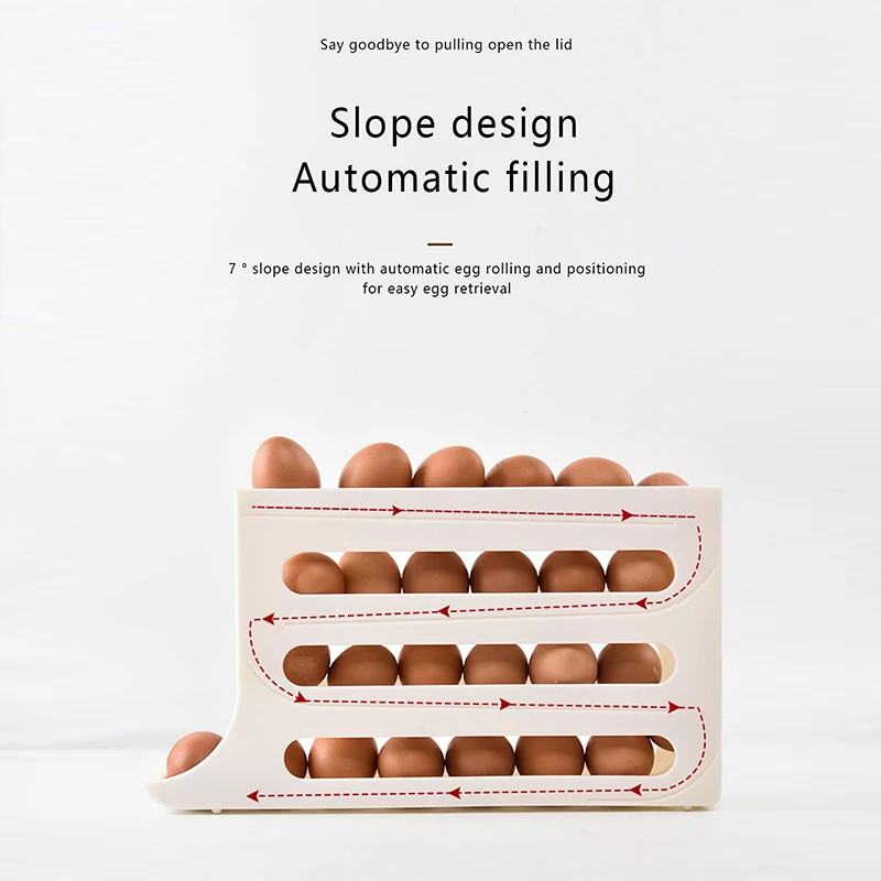 Say goodbye to pulling open the lid, easy egg retrieval: 7 ° slope design, automatic egg rolling and filling, easy egg retrieval
