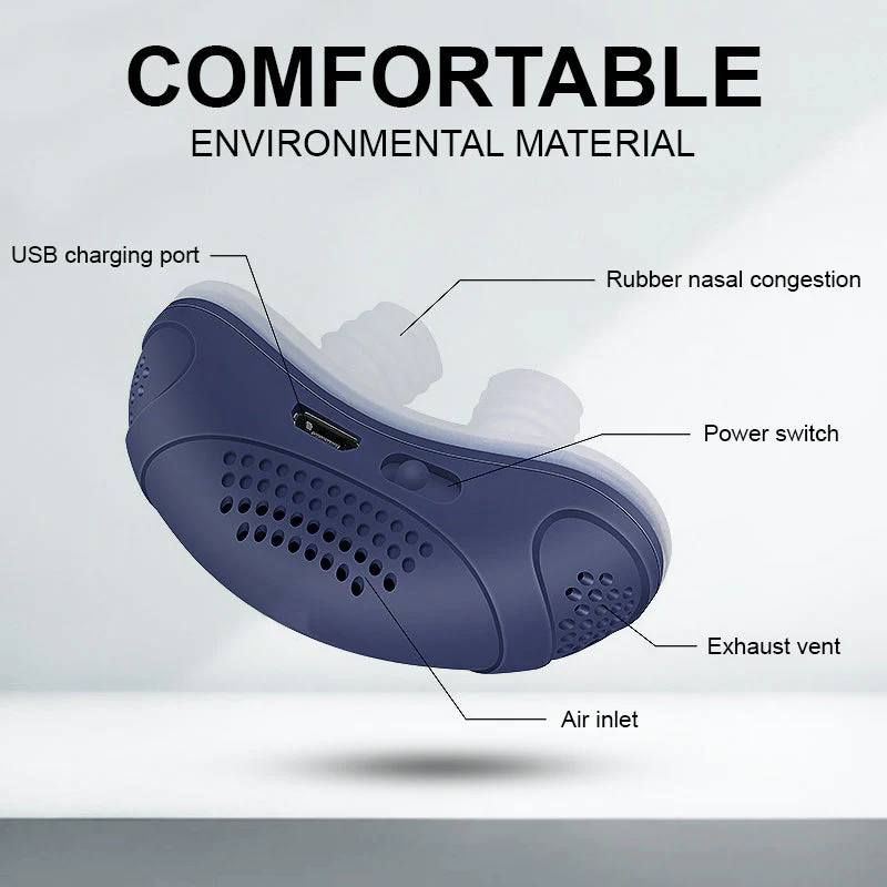 Electric Well Sleep ApneaStop Device help increase airflow through the nose during sleep. Alleviating congestion or restricted airways helps stop snoring and improves sleep quality. It has been proven in clinical trials to increase airflow through nasal passages up to 90% over nasal strips.