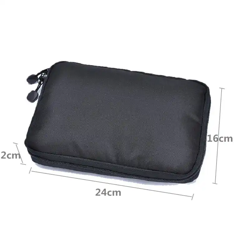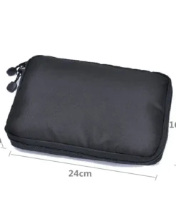 There are lots of cord organizers to chose from. This one is flat (about 1” thick) and about the same size as a smaller iPad. Description said to pick a larger size to hold chargers, but I took a chance and my iPad charger, two iPhone chargers, a USB-C dongle, small charger, and a lot more for neatly with everything in its place. Would have been nice to include an external carry handle, but I’ll sew one on myself. Very pleased with this carry case.