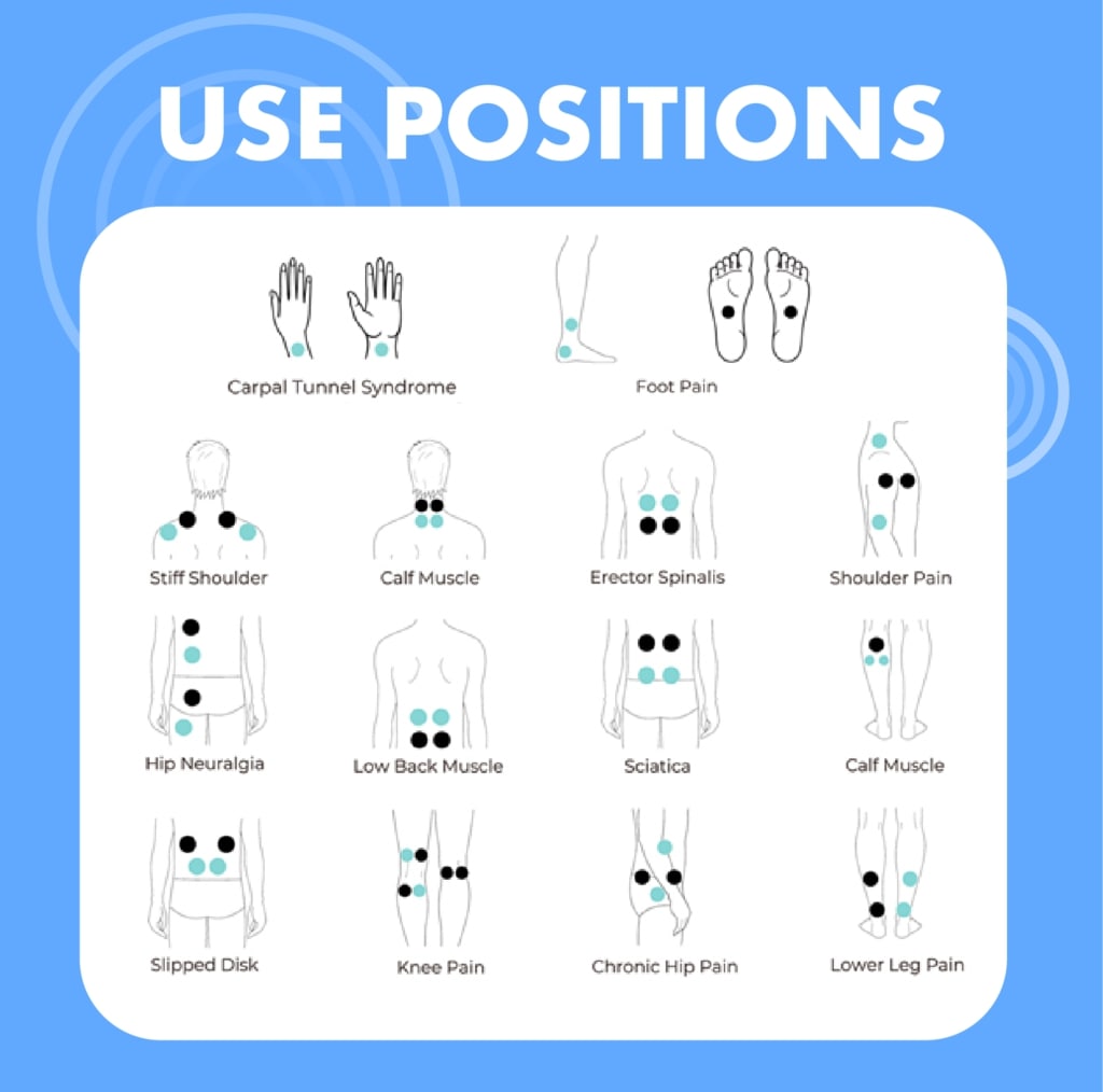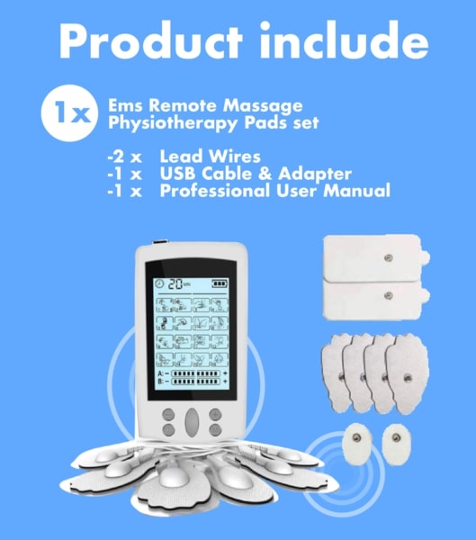 The EMS Remote Massage Physiotherapy pads will ease your pain! You can say goodbye to arthritis, back pain and sports injuries, as well as period pain, knee pain and neck pain.