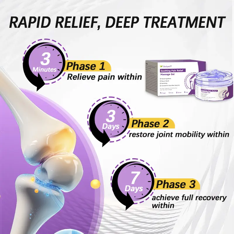 Approved by orthopedic specialists, Ourlyard™ Emu Oil & Turmeric Arthritis Soothing Pain Relief Massage Gel delivers fast relief, soothing pain in just 3 minutes. It restores joint mobility within 3 days and supports full arthritis recovery in just 7 days. Formulated with natural anti-inflammatory ingredients like organic turmeric and pure emu oil, this gel penetrates deeply to reduce inflammation, lubricate joints, and promote long-term healing. Clinically proven and easy to use, it’s the ultimate solution for arthritis sufferers seeking quick relief and lasting recovery.
