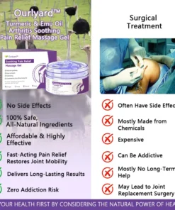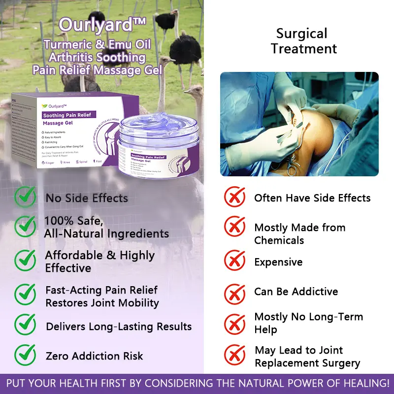 As an orthopedic surgeon, I highly recommend Ourlyard™ Emu Oil & Turmeric Arthritis Soothing Pain Relief Massage Gel for individuals dealing with joint pain, osteoarthritis, rheumatoid arthritis, and other inflammatory conditions. This gel combines the potent anti-inflammatory properties of turmeric and emu oil, working together to reduce pain, ease inflammation, and support joint health. Beyond pain relief, it also promotes tissue regeneration and aids in long-term joint recovery. Its unique formula helps repair damaged cartilage and supports overall mobility, offering lasting relief and improved joint function.