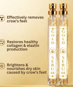 - 1. Spritz our Gold Serum evenly across your facial skin.