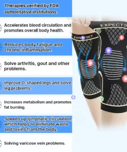 EXPECTSKY™ Ice slik Tourmaline Shaping & Detoxification Knee Sleeve uses innovative technology embedded with Tourmaline, a precious natural mineral, to stimulate acupuncture points on the arms and legs using massage technology. This stimulates fat burning, enhances blood circulation, and balances the autonomic nervous system, promoting overall relaxation. By applying tension, it effectively improves blood circulation in the muscles and joint cavity around the knee joint, regulates the intra-articular environment, and is useful in the prevention and treatment of rheumatoid arthritis, old cold legs, and osteophytes of the knee joint.