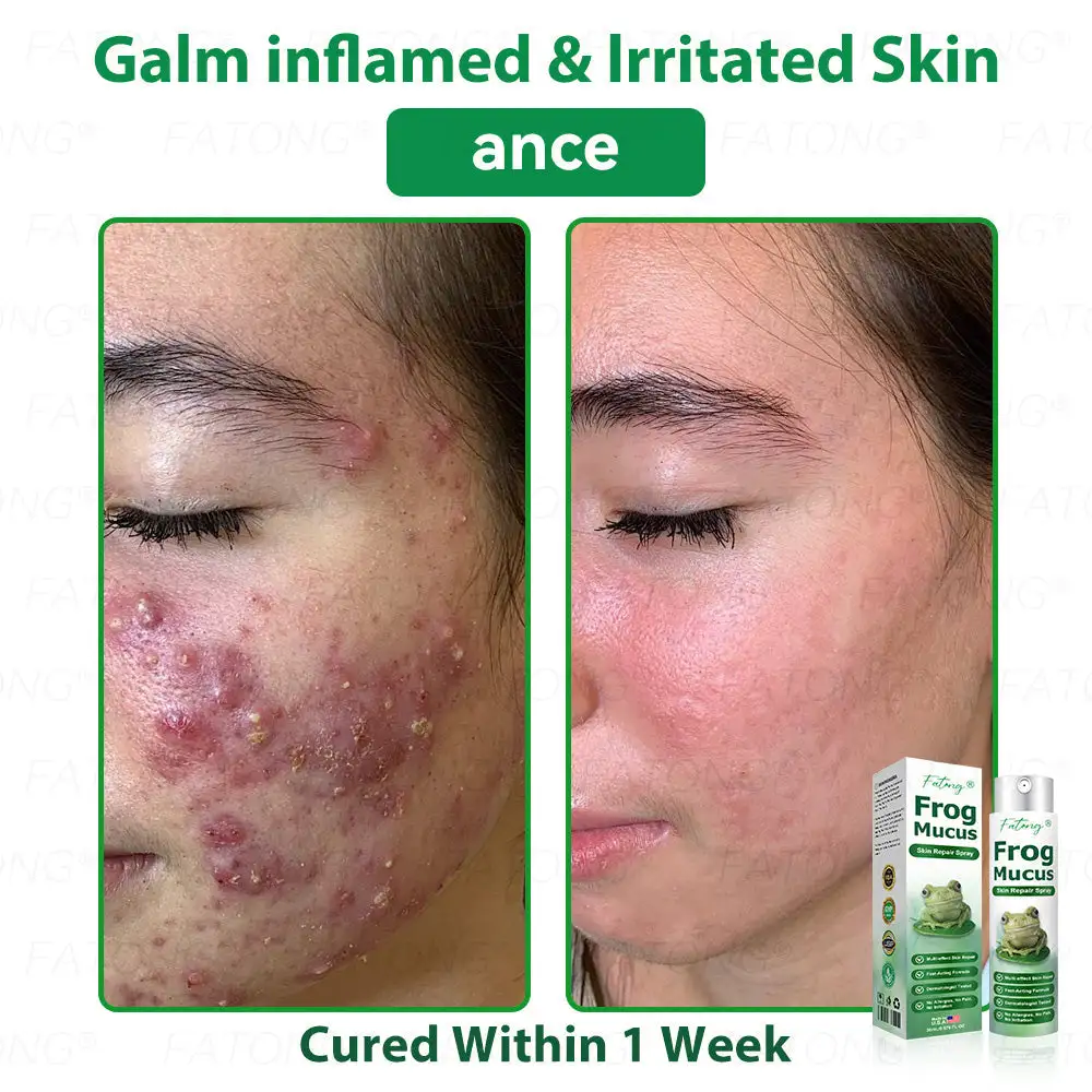 The Frog Mucus Skin Repair Spray is a potent remedy for various skin concerns, powered by the unique bioactive compounds found in frog mucus. Rich in proteins, peptides, and natural enzymes, it offers strong anti-inflammatory and antibacterial benefits, accelerating skin repair while helping to soothe irritation, reduce blemishes, and restore skin health.