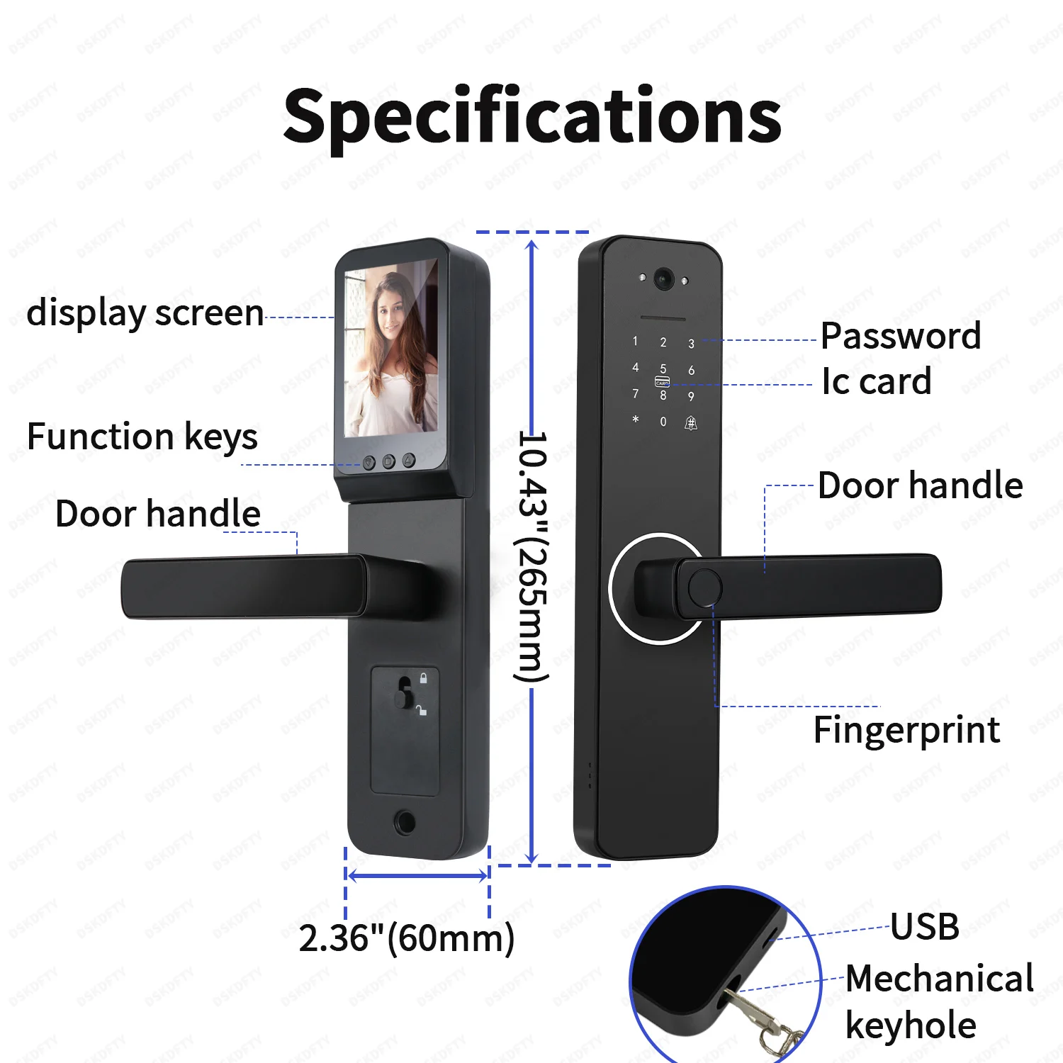 DSKDFTY Camera Digital Electronic Lock Biometrics Fingerprint Smart Door Lock for With Battery for Home House Apartment