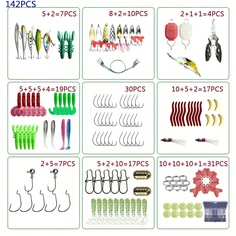 This fishing lure set comes with 18/21/59/142 pieces of mixed lures, providing a wide range of options for different fishing situations.