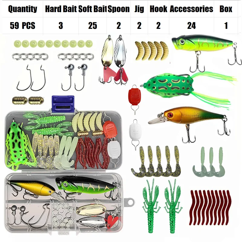 This fishing lure set includes everything you need to get started in fishing, making it a great option for beginners or those looking to expand their fishing gear.